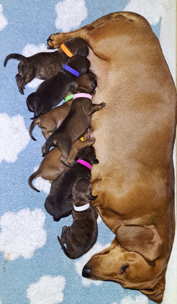 Am 29.12.2025 zwischen 04.30 Uhr und 10.30 Uhr hat Mascha 7 gesunde Welpen zur Welt gebracht.