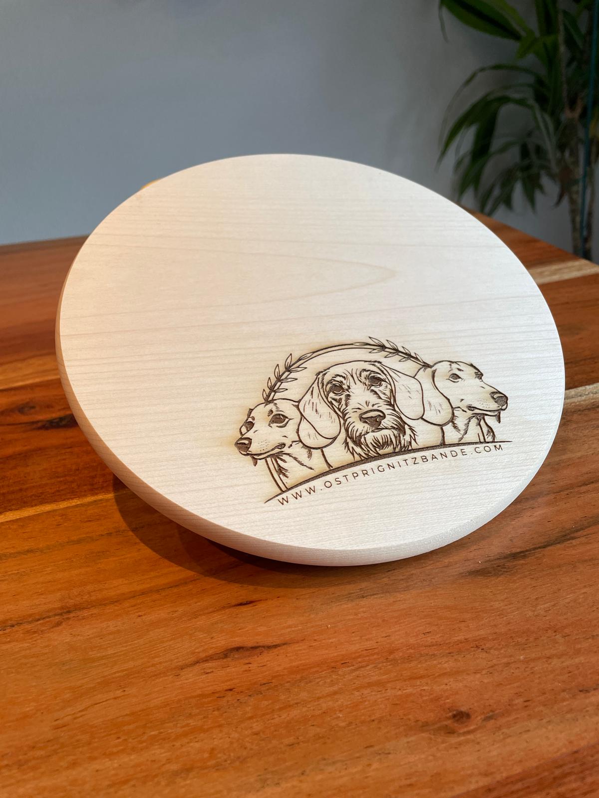 🌿✨ Gefertigt aus hochwertigem europäischem Ahornholz, massiv, naturbelassen und langlebig, überzeugt das Dackel Frühstücksbrettchen durch Qualität und Nachhaltigkeit. Die Rückseite ist mit dem Logo der Ostprignitzbande versehen.